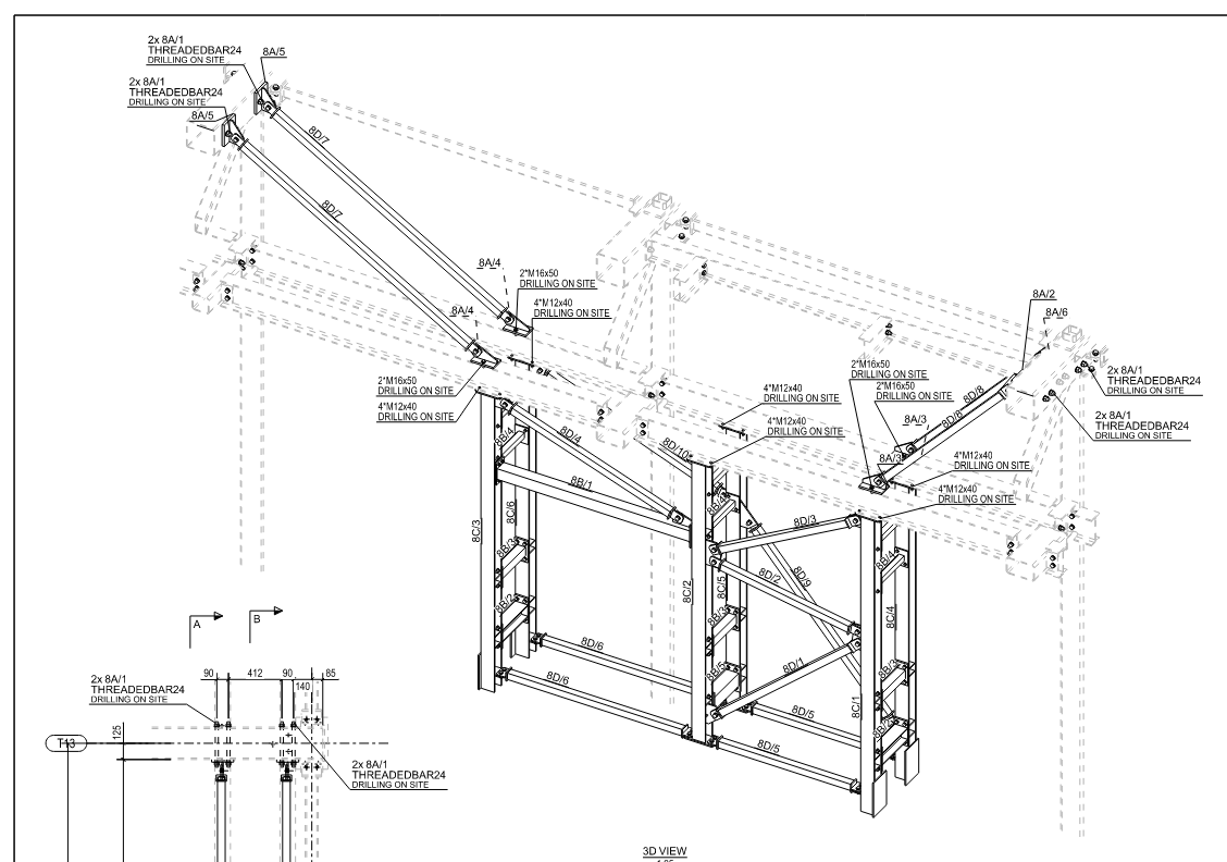 Utarbeidelse av verkstedtegninger og monteringstegninger for hoved- og sekundærstålkonstruksjoner og prefabrikkerte betong.
